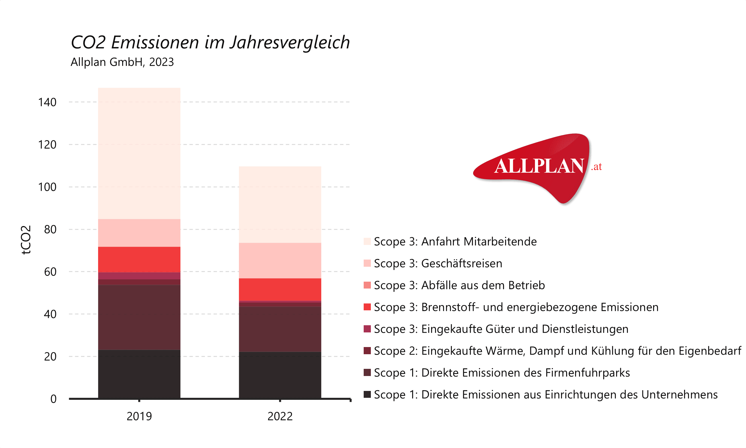 Die Emissionen 2020 und 2021 waren geprägt durch Büroschließungen in den Lockdowns, Homeoffice und massiver Reduktion von Flugreisen und der Anreise der Mitarbeitenden. Demnach wird das Jahr 2022 nach der Pandemie mit 2019 verglichen.