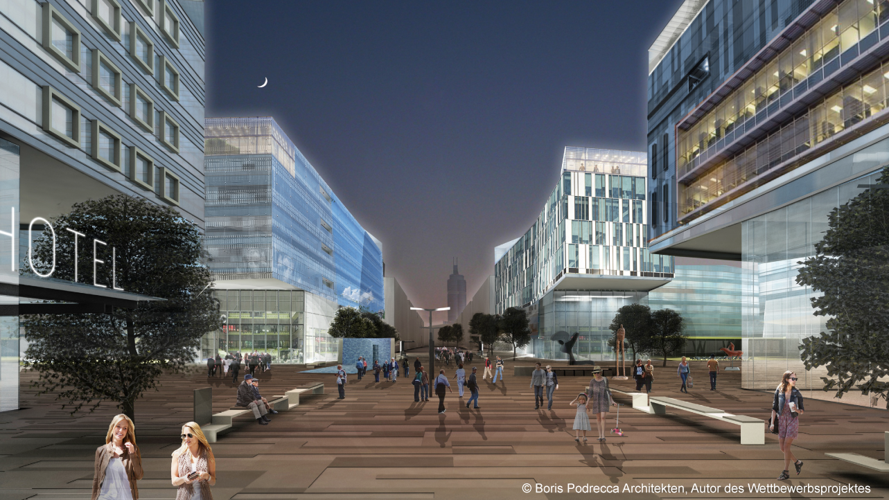 Bruttogeschoßfläche oberirdisch: ca. 200.000 m² (Büro, Hotel, Kindergarten, Küche, Restaurant)